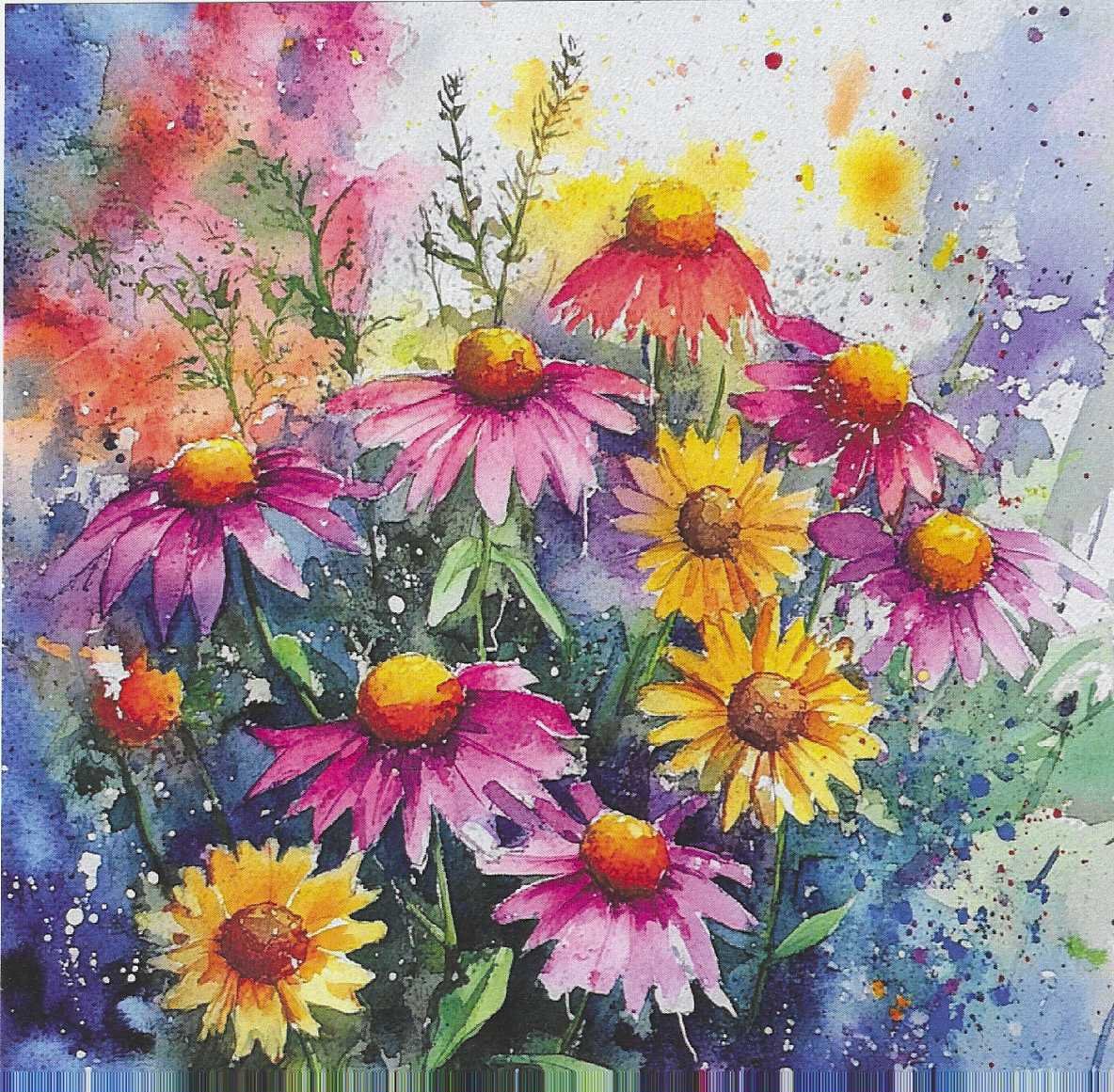 Descubre esta hermosa colección de flores en estilo artístico, con colores vibrantes y suaves efectos de acuarela que transmiten alegría, frescura y armonía.