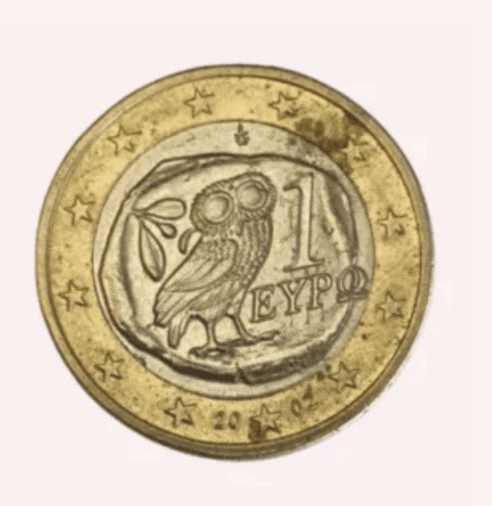 Lo que destaca de esta moneda es su diseño único. El centro de la moneda muestra un detallado grabado del búho, tomado directamente de una moneda antigua de la antigua Atenas. Este detalle no solo aporta un valor cultural, sino que también evoca una conexión con la Grecia clásica, donde las monedas simbolizaban poder e identidad. Alrededor del diseño central, los 12 bordes de la estrella representan los países de la Unión Europea que adoptaron el euro en 2002, haciendo de esta moneda un homenaje a la unidad económica y cultural.