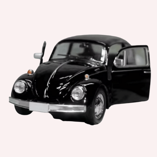 Miniatura inspirada en el legendario Volkswagen Escarabajo, ícono indiscutido del diseño automotriz clásico. Este modelo se presenta en un elegante color negro, sobrio y atemporal, que resalta con fuerza sus líneas redondeadas y le otorga una presencia sólida y distinguida.