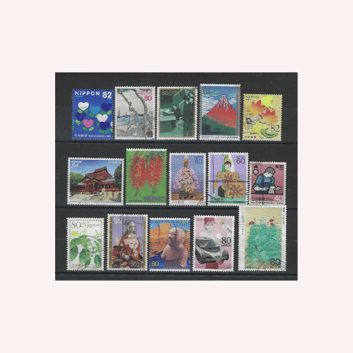 Estos 15 sellos cuidadosamente seleccionados de Japón ofrecen una ventana única a la fascinante historia y creatividad de este país. Con temas e imágenes variadas y atención al detalle en diseño, cada uno cuenta con un valor nominal que los hace auténticas piezas de colección. Ideales para ampliar, mejorar o comenzar tu propia colección de sellos.