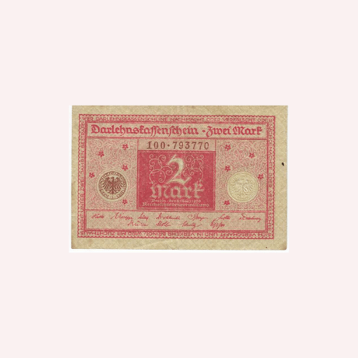 El billete alemán de 2 Marcos, emitido entre los años 1914 y 1922 por la administración oficial de la deuda del Reich, representa una joya de la numismática. Durante un período de gran transformación política y económica, este billete simbolizó la estabilidad financiera respaldada por activos reales de la nación, incluyendo bienes industriales y agrícolas.