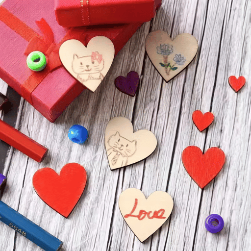 ❤️ 20 Placas de Madera Natural – Forma de Corazón
