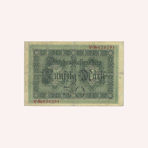 El diseño del billete de 50 marcos refleja la rica herencia artística del Imperio Alemán. Su intrincado grabado y los detalles minuciosamente trabajados lo convierten en una obra de arte digna de admiración. Cada elemento está cuidadosamente diseñado para transmitir los valores del Imperio, incluyendo símbolos de fuerza, progreso y unidad nacional. Este billete no solo era un medio de intercambio económico, sino también un reflejo cultural de la época.
