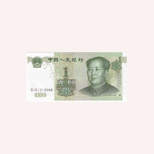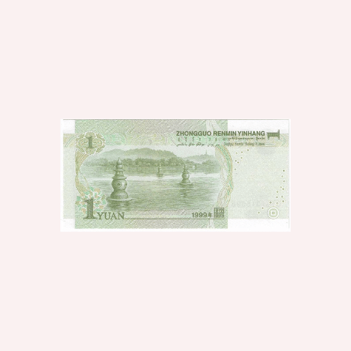 En el anverso, destaca el retrato de Mao Zedong, figura central en la historia moderna del país y elemento común de esta serie. El diseño combina retrato, tipografía clara y patrones de fondo que aportan seguridad visual. La paleta cromática utiliza tonos verdes suaves, característicos de esta denominación. El valor facial “1 Yuan” aparece claramente visible junto a inscripciones oficiales y numeración de serie.