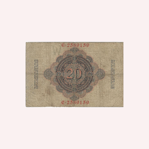 El billete mantiene elementos originales, con detalles bien definidos que reflejan el estilo artístico y la impresión de principios del siglo XX en Alemania. Si bien muestra signos del paso del tiempo, estos rasgos naturales son evidencia de su autenticidad y lo hacen aún más valioso desde una perspectiva histórica. Este billete usado es representativo de un periodo clave en el que la moneda desempeñó un papel crucial en la economía y vida cotidiana de la sociedad alemana.