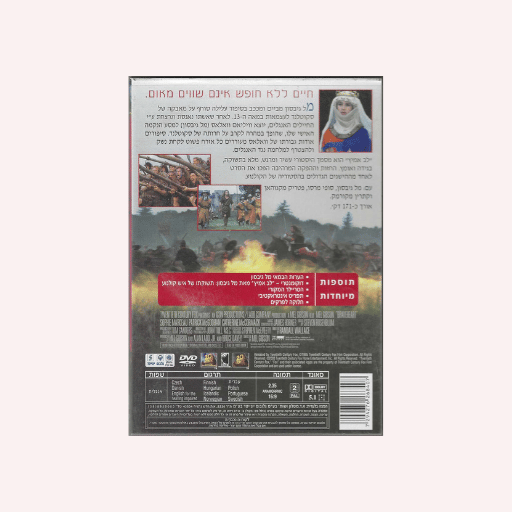 Esta edición en DVD físico, distribuida en Israel, presenta carátula y textos en hebreo, lo que la convierte en una edición regional atractiva para coleccionistas. Es una pieza ideal tanto para amantes del cine épico como para quienes buscan ediciones internacionales de grandes producciones cinematográficas.