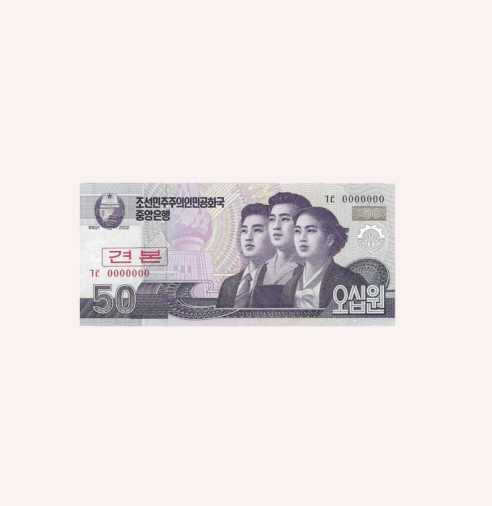 Hecho en uno de los países más enigmáticos del mundo, este billete encapsula la estética y el simbolismo característico de Corea del Norte. Representa no solo una transacción económica, sino también un fragmento de historia, un testimonio palpable de un tiempo y lugar muy específicos.