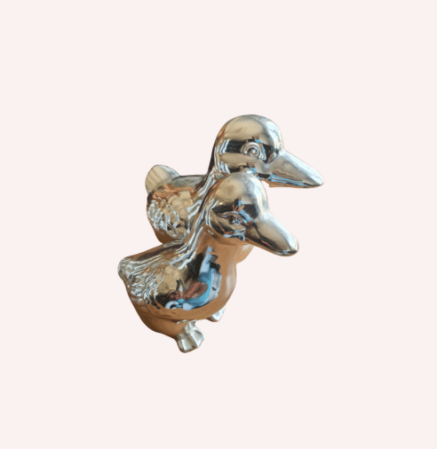 El diseño de este conjunto decorativo resalta por su atención a los detalles y su estilo refinado. La figura de la mamá pata y su cría simbolizan unidad y amor, añadiendo un mensaje emocional a tu espacio. El acabado plateado es ideal para iluminar cualquier rincón de tu hogar, adaptándose perfectamente a mesas auxiliares, estanterías o incluso como pieza central en tu sala de estar. Además, su tamaño compacto lo hace fácil de incorporar en cualquier lugar sin ocupar demasiado espacio.