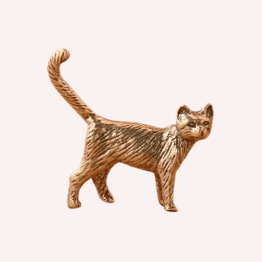 Delicada miniatura decorativa de gato en posición elegante, elaborada en metal con acabado color oro.