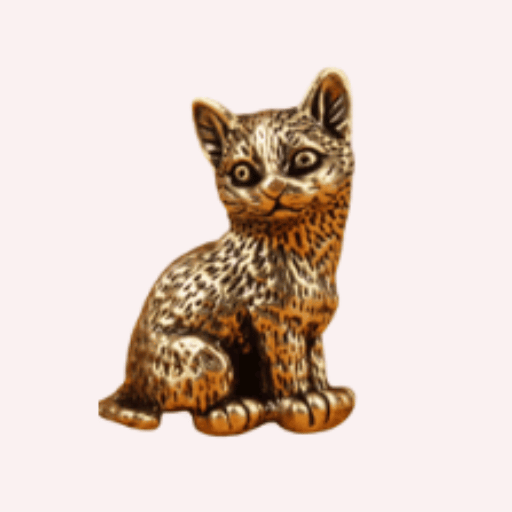 Encantadora miniatura de gato sentado, elaborada en metal con acabado color oro, con expresión curiosa y postura elegante que transmite personalidad y ternura.