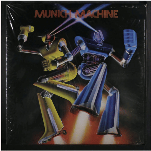 Este álbum de música disco de 1977, titulado Munich Machine, corresponde al proyecto musical Munich Machine, una de las propuestas más emblemáticas del disco europeo de los años 70. La portada es inconfundible: muestra dos figuras de robot, una amarilla y otra azul, convirtiéndose en una imagen icónica de la estética futurista de la época.