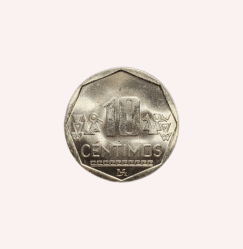 Fabricada en bronce, esta moneda ofrece una durabilidad excepcional, asegurando que su belleza perdure con el tiempo. El reverso exhibe un diseño grabado con detalle, que incluye el denominativo de 10 céntimos y el año 2022, mientras que el anverso refleja el escudo nacional, un emblema icónico de la identidad peruana. Su peso y tamaño aseguran ser adecuados para los estándares coleccionistas, ofreciendo una experiencia visual y táctil única.