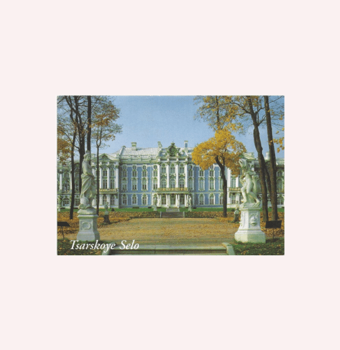 El Palacio de Catalina, con su elegante fachada y sus jardines meticulosamente diseñados, cobra vida en cada detalle de esta postal. La imagen muestra la suntuosidad de este emblemático lugar, evocando la grandeza del Imperio Ruso. Su diseño está elaborado para destacar los colores y las formas características, ofreciendo un testimonio visual digno de admirar y conservar.