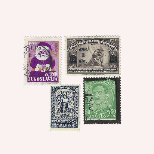 Esta increíble colección de cuatro sellos pertenece a un período significativo de la historia europea: el Reino de los Serbios, Croatas y Eslovenos, que más tarde se convirtió en Yugoslavia. Cada sello, con su diseño auténtico y detalles meticulosos, cuenta una historia propia y refleja la identidad cultural de esta región en transición a lo largo de principios del siglo XX.