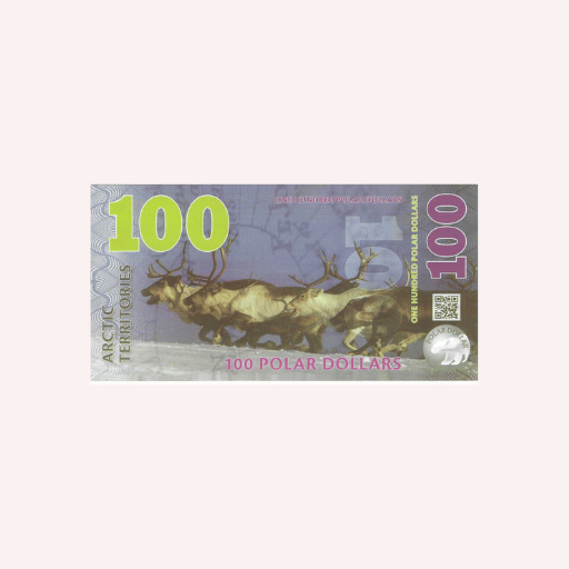 Este billete de $100 dólares de los Territorios Árticos, conocido como “Polar Dollar”, es una emisión numismática destinada exclusivamente al coleccionismo y no constituye moneda de curso legal en ningún país. Se trata de un artículo creado con fines culturales, temáticos y coleccionables.