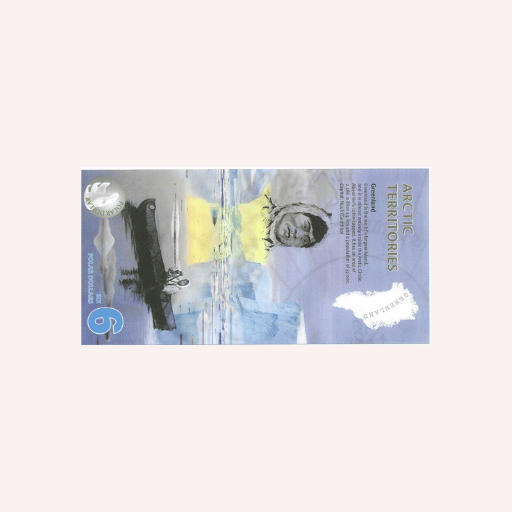 Este billete para coleccionistas de 6 “Polar Dollars” de los Territorios Árticos es una emisión privada diseñada exclusivamente con fines numismáticos, no destinada a la circulación y sin validez como moneda de curso legal en ningún país o territorio. Se trata de una pieza moderna creada para el coleccionismo y la divulgación temática.