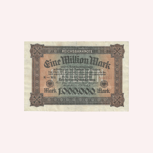 Descubra un fragmento de la historia económica mundial con este auténtico billete de un millón de marcos alemanes de 1923, emitido durante el alarmante periodo de hiperinflación en la República de Weimar. Esta pieza representa una época singular en la que el valor del dinero llegó a niveles inesperados, marcando un evento clave en la historia monetaria mundial y ofreciendo un fascinante vistazo al impacto económico y social de la inflación descontrolada.